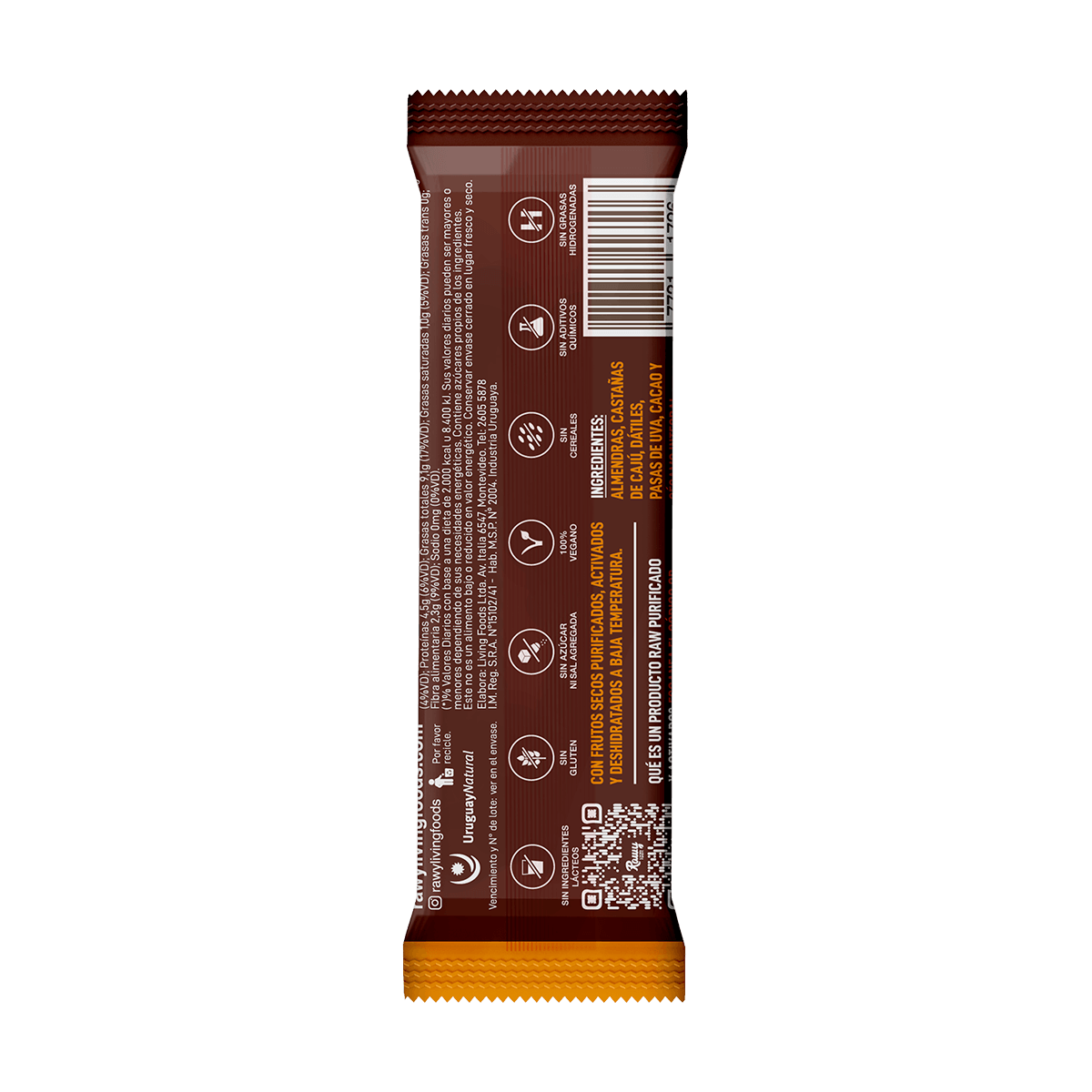 Sin gluten, sin azúcar agregada, sin sal, sin cereales, sin aditivos ni conservantes, sin aceites ni grasas hidrogenadas, sin ingredientes lácteos, sin maní, sin huevo, gran fuente de fibras y 100 % veganos.